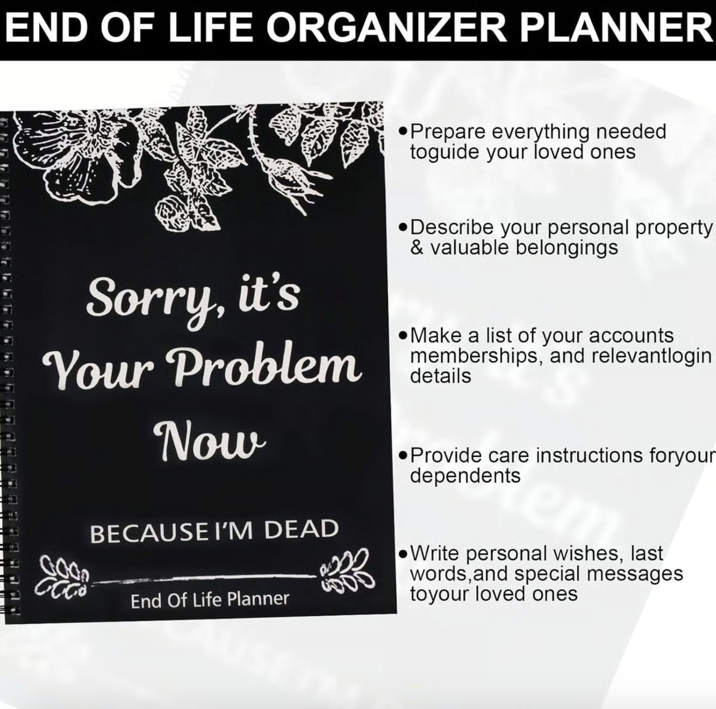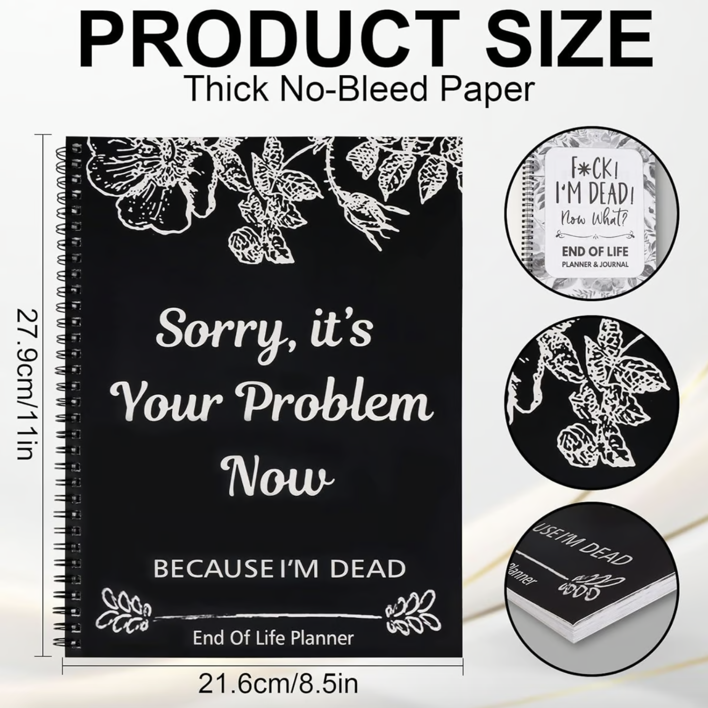 The "Sorry, It’s Your Problem Now, Because I’m Dead" planner tackles a serious subject with a light-hearted twist. It makes future planning more manageable and even fun. From financial details to end-of-life care wishes, this planner covers everything with both thoroughness and humor.