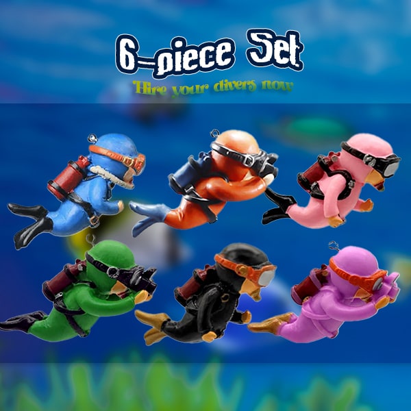 A unique mini diver ornament designed with a distinct, realistic appearance and vibrant hue. It acts as an additional decoration that will surely liven up the texture and environment of any aquarium types and sizes. Moreover, this miniature diver can float and cutely flow according to the water current, like real divers diving in the sea. It allows your precious fish to play and interact with it to relieve their boredom. No worries as the diver ornament will not crowd the fish tank and obscure your view.
