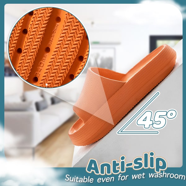 Made of high-quality, skin-friendly EVA material with an amazing durability and cushioning. These pillow slides can withstand years of daily wear and tear without fading or deformation. The pair is fully waterproof and washable so you can freely use them in any wet conditions without the awkward squeaky noise as you step. No worries as these stylish slippers do not emit any odors even after a long wear or get drenched in water.