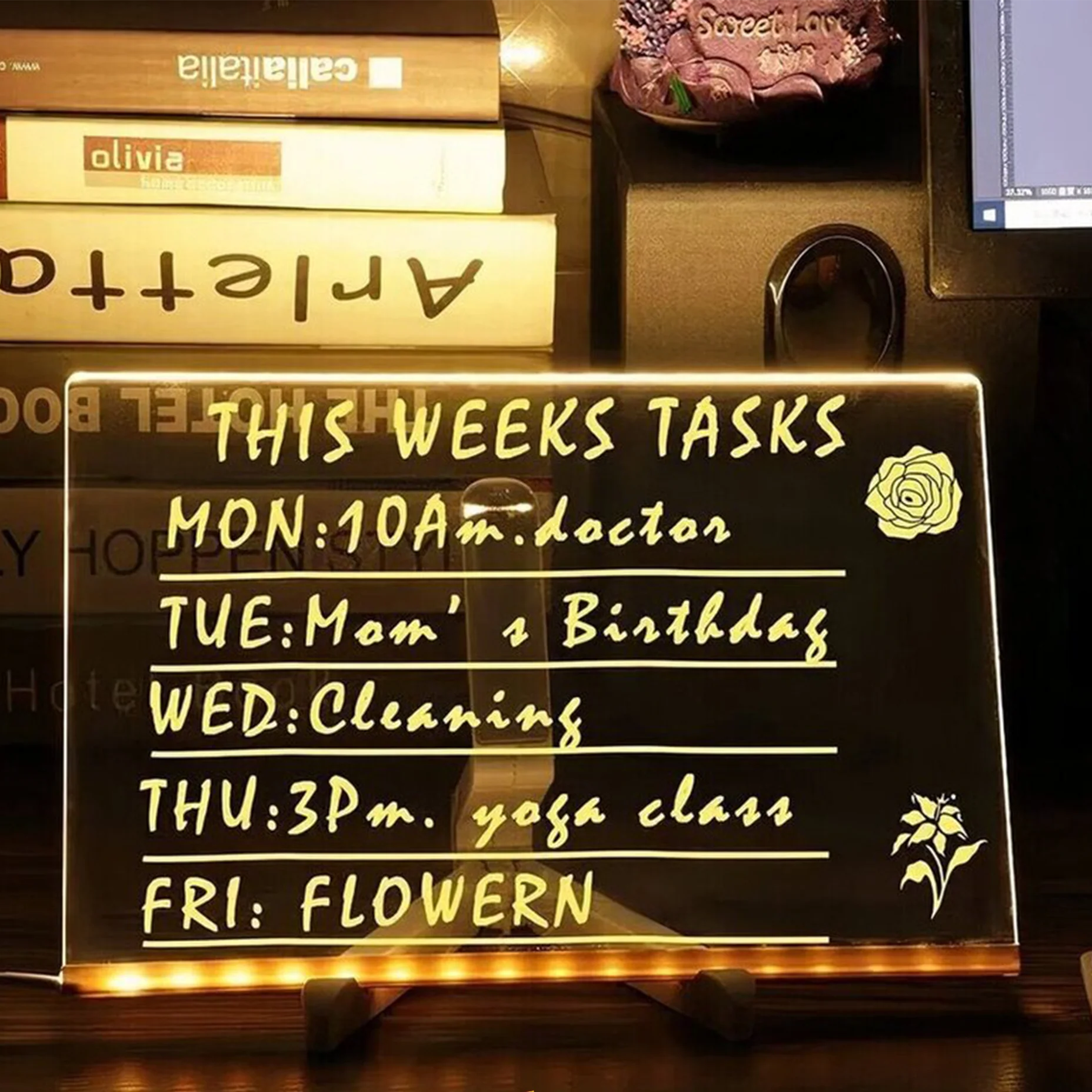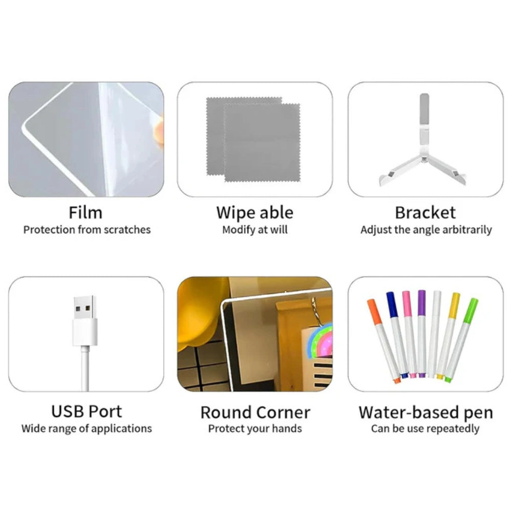 Re-usable: This can be used as a doodle board, planning board, memo board, or a glowing noteboard for reminders and messages.