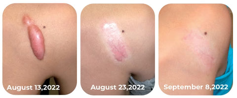 The medical-grade silicone in the Scar Remover Gel heals scars by increasing the hydration of the skin, which tells the body that it doesn’t need to produce as much collagen.