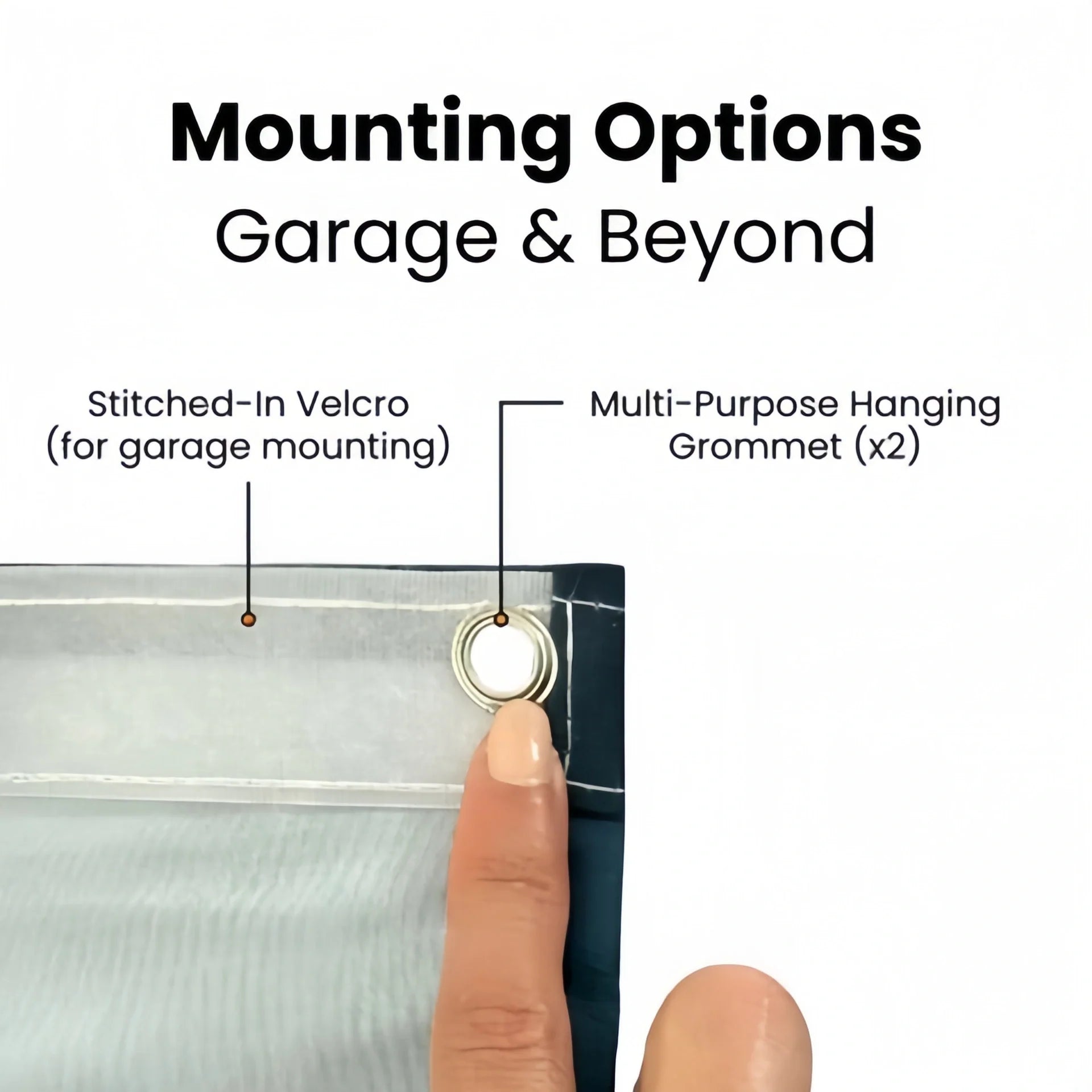 Every one now comes with a FREE upgraded installation kit that includes our new stitched-in flat elastic bands for the bottom corners and Velcro rolls for the top. Simply stick the top of your Halloween garage door cover to your door using Velcro. Then, hook the elastic bands to the second hinge behind your garage door, and voilà! You're good to go faster than a witch on a broomstick!