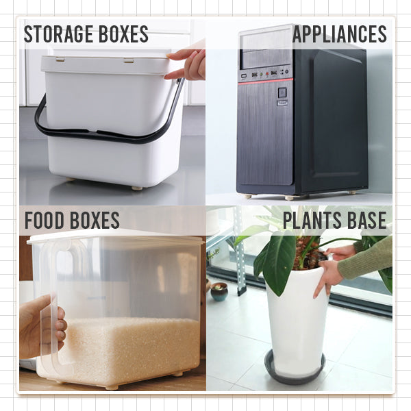 Mini Furniture Wheels Set equips with 360° rotatable wheels to help you to move around your items to any directions without any effort. The wheels are mini, nearly invisible, which saves the space of height. Since the wheels do not scratch any surfaces, it gives a silent experience. You can widely apply the wheels to all domestic appliances and storages like rubbish bin, boxes, racks, cabinets, and more!