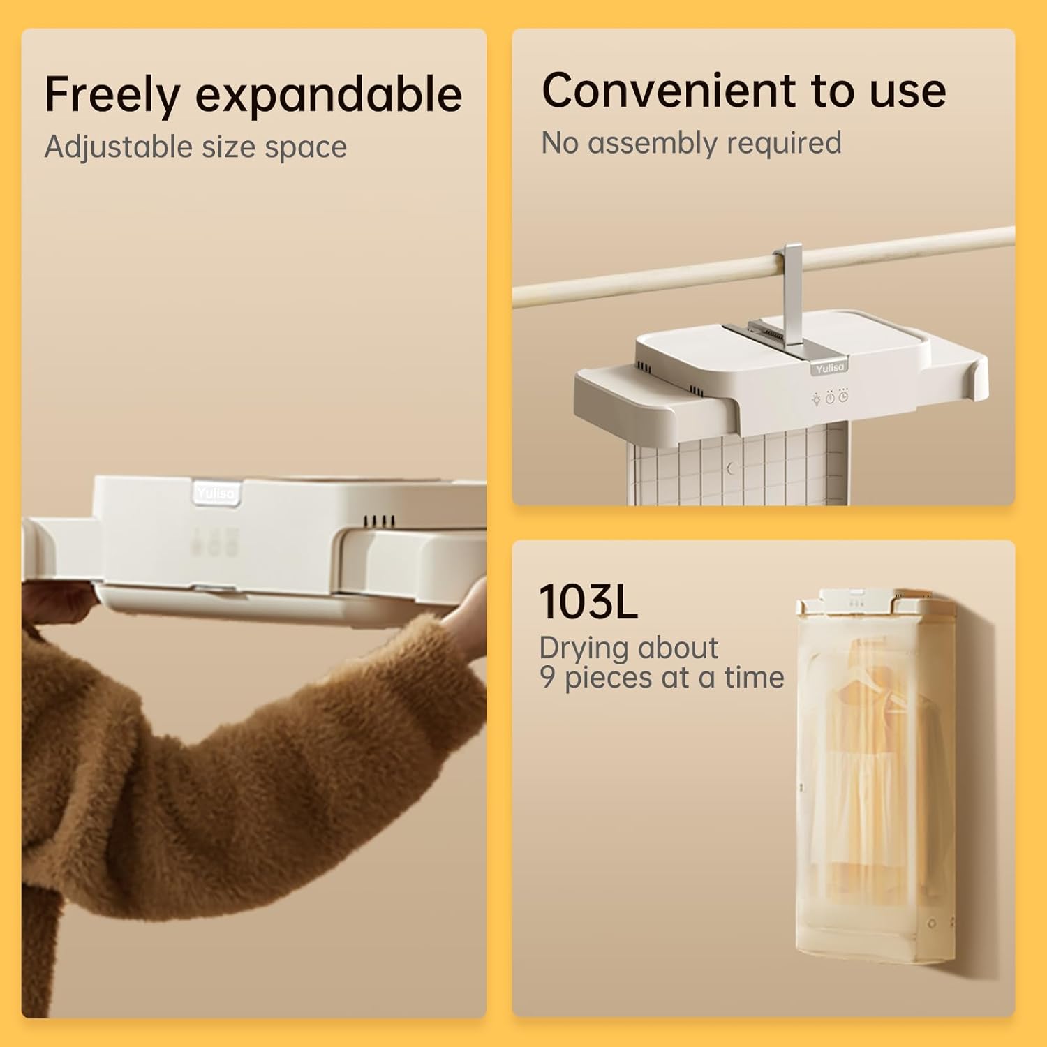 "Dry your clothes quietly, quickly, and anywhere—even in the smallest spaces."