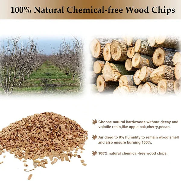 - 8 Flavors set include: Apple/Beech/Oak wood/Pecan wood/Hickory/Mixed wood/Cherry/Peartree