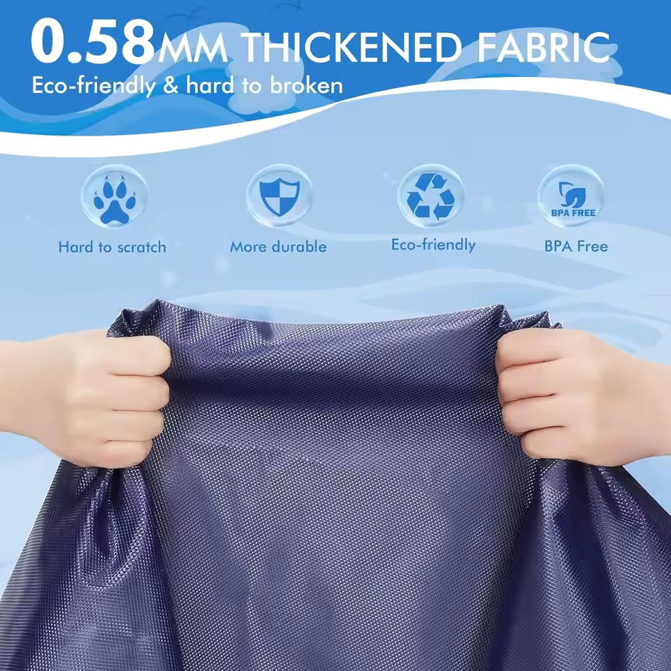 Safety is our top priority. This Dog Splash Sprinkler Pad is made of environmental PVC material, non-slip and free from BPA and plasticizers, safe for daily use. 0.45mm thickness is 30% thicker than other splash pad, while high-quality edge sealing technology makes it difficult to burst.