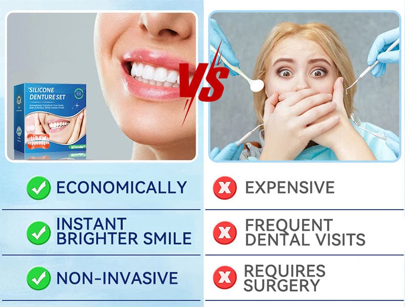 Do you sometimes feel insecure about your smile or crooked teeth? There's no need to go to the dentist for expensive treatment! The Bikenda™ Silicone Reline Denture Set offers a cost-effective solution to achieve a perfect smile.