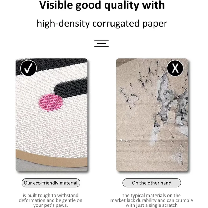 This vertical cat scratch board also can be played when placed flat and satisfy your cat's natural instincts: give your furry friend a designated place to unleash its inner wildcat!